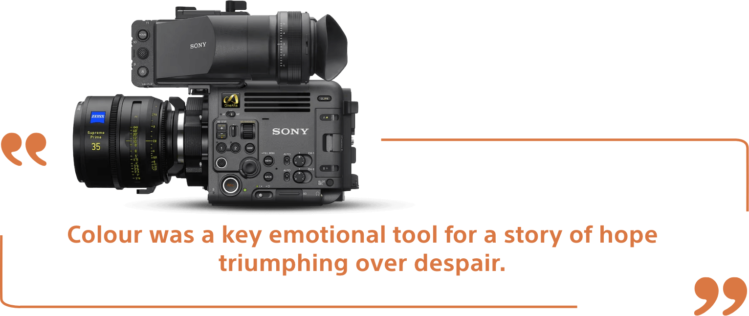 For STHD, a story of hope triumphing over despair, I knew colour would be a key emotional tool. The BURANO’s smaller, lighter build made it perfect for a fast-moving, low-budget film. Its dual ISO and built-in ND filters were especially useful since I like varying apertures between shots to control depth of field. I started with IRIX lenses, which worked beautifully, but later shifted to Master Primes because the IRIX set was calibrated in meters, and my focus puller, used to working in feet, struggled with precision. Overall, the BURANO gave me the ideal balance of flexibility, speed, and image quality for this film.